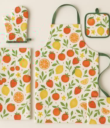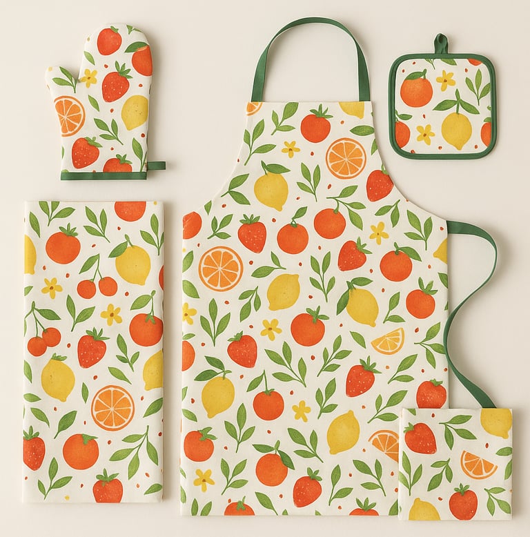 The kitchen towels and aprons are of exceptional quality, perfect for my home and kitchen needs.